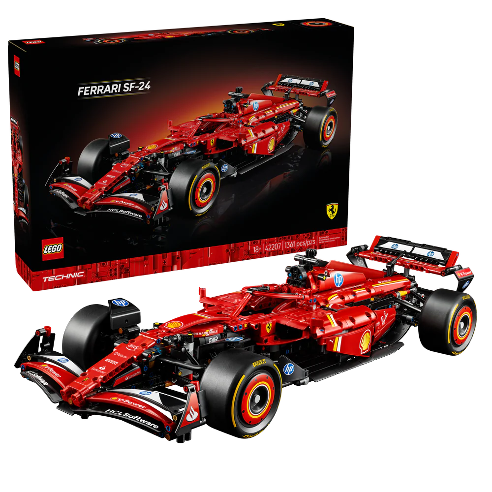 - Kit de la maqueta de un auto de F1 para adultos: Ocupa la primera posición de la parrilla de salida con la maqueta LEGO® Technic auto Ferrari SF-24 F1 para adultos, repleta de características que encantarán a los aficionados a la F1
