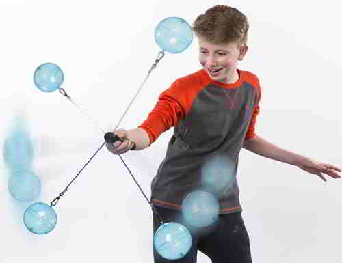 Bolas Voladoras – Bizak 00001. Juego de malabares en el que tendrás que conseguir mantener durante el mayor tiempo posible el golpeo de las bolas mediante movimientos rítmicos de la muñeca y también del brazo, manteniendo la cuerda tensa y con el simple movimiento del asa. Además atrévete con trucos cada vez más complicados. ¡Es fácil y divertido!¿Cuántas veces podrás chocarlas?