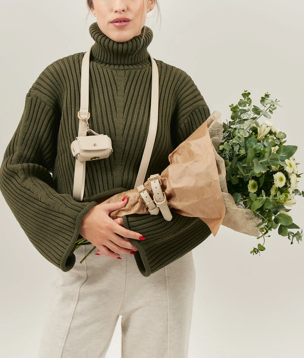 Capacidad para un rollo de bolsas con dispensador por la parte inferior y tapa de acceso superior con botón. Evita los productos hechos en cuero animal con esta alternativa hecha en cuero vegano a base de Lignin, un residuo de la industria del papel que genera 100.000.000 toneladas de desperdicio al año.