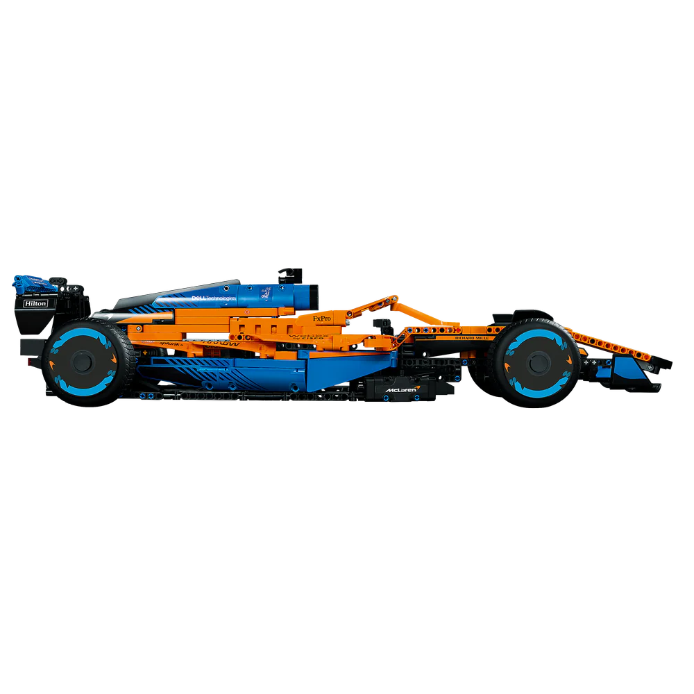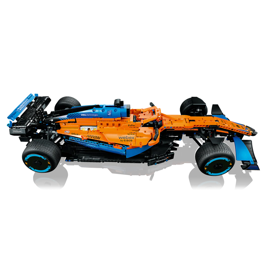 Para la temporada 2022, los diseñadores de LEGO Technic trabajaron estrechamente con sus homólogos de McLaren Racing. Ambos equipos de expertos desarrollaron sus respectivos modelos en paralelo y, por ello, se trata de una colaboración muy especial. Como si fuera de verdad, esta versión LEGO Technic cuenta con motor de 6 cilindros en V con pistones móviles, dirección, suspensión y diferencial.