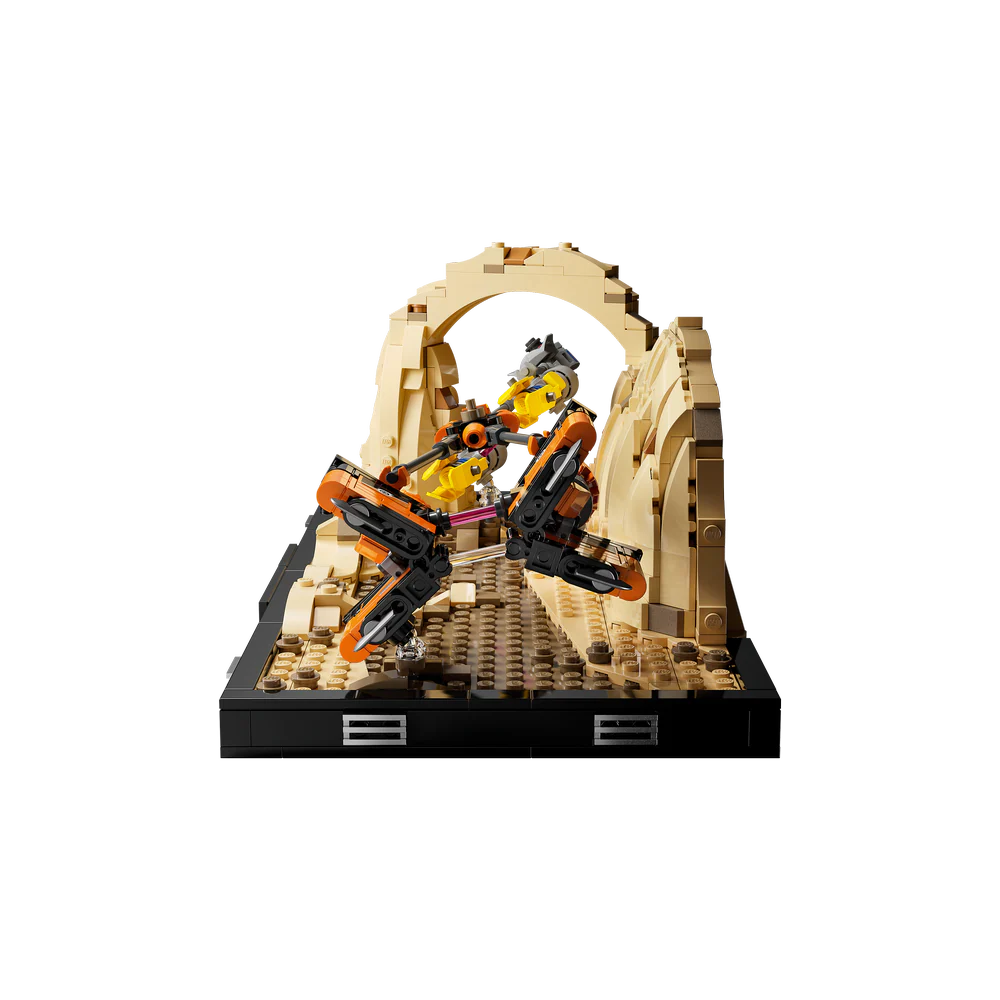- Detallado set LEGO® Star Wars™ en formato de diorama para construir y exponer: Captura un momento de la carrera de vainas de Mos Espa en Star Wars: La Amenaza Fantasma con este kit de maqueta construible para adultos