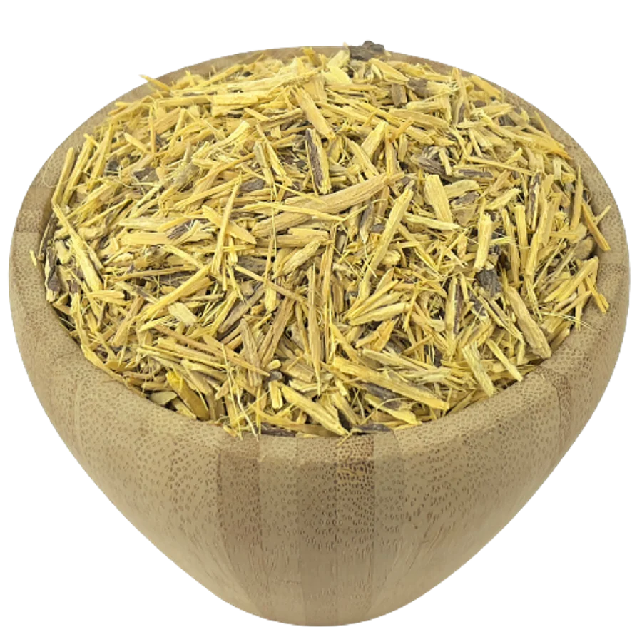 La raíz de regaliz cortada orgánica (Glycyrrhiza glabra) es deliciosa como infusión. la raíz de regaliz contiene azúcares, cumarinas, almidón, esteroles, isoflavonas, asparagina, saponósidos, incluida la glicirricina.