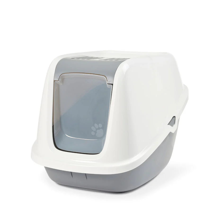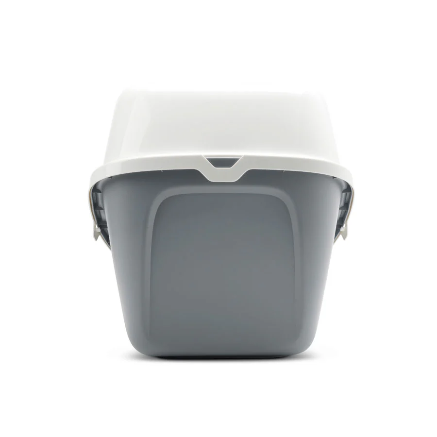 Equipada con una puerta batiente de plástico y dos filtros de carbón reemplazables que absorben los olores desagradables. Utilice nuestras bolsas para bandejas sanitarias Bag it Up Giant para una bandeja sanitaria perfectamente limpia y para prolongar la vida útil de la bandeja. Color gris. Medidas: 78x59x58 cm»