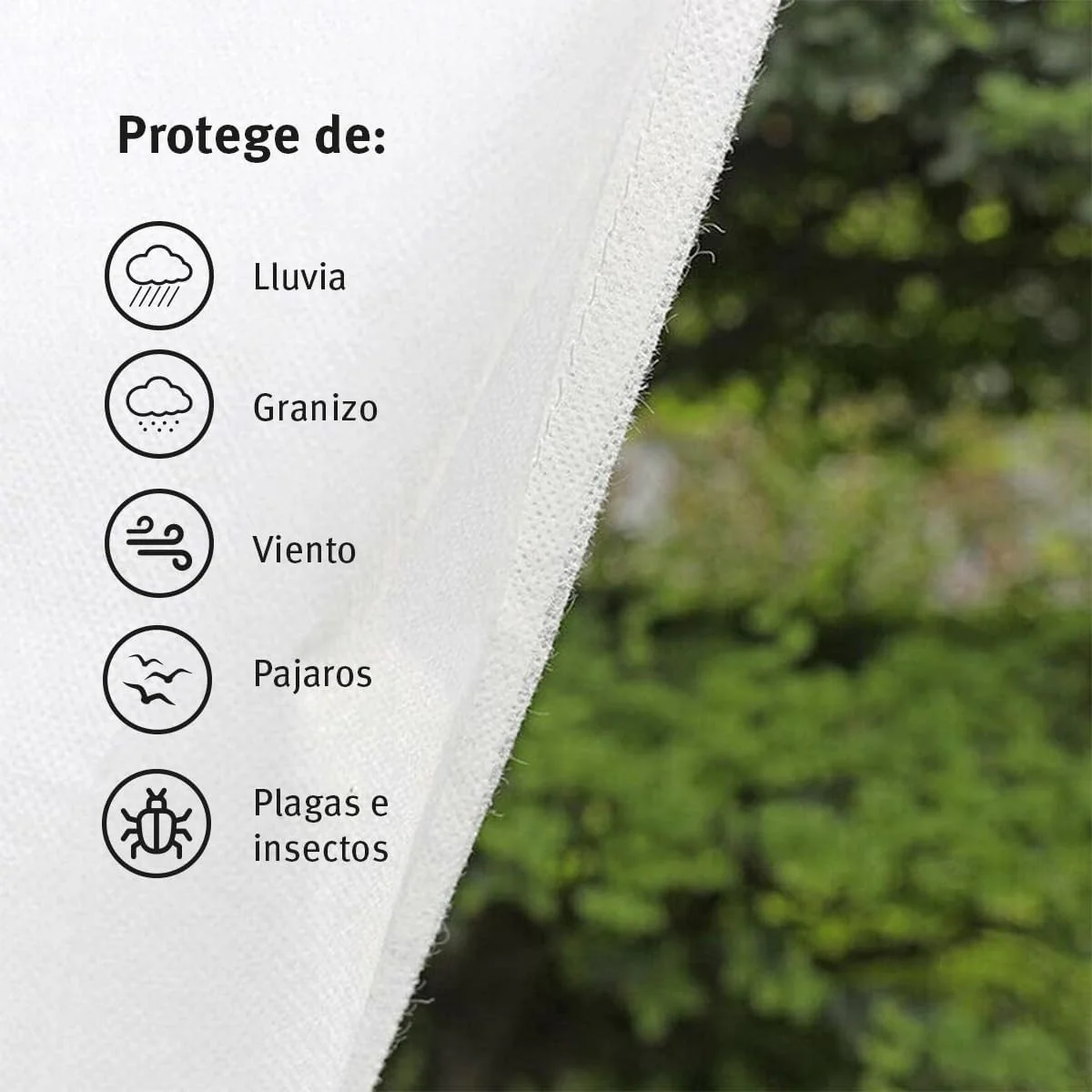 - Favorece el crecimiento, la floración y el fruto en terrazas, huertos o macetas exteriores gracias a su material con protección UV, permeable y transpirable, que permite el paso de la luz, el aire y el agua.