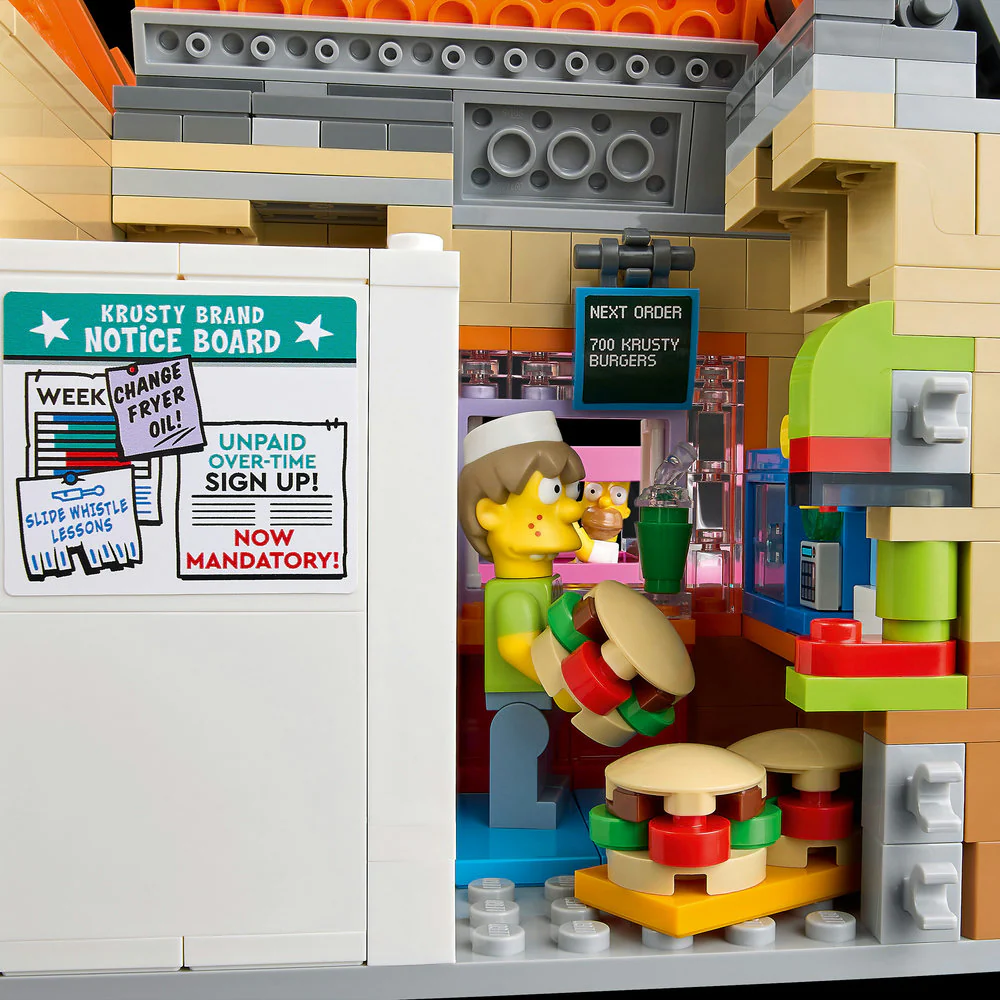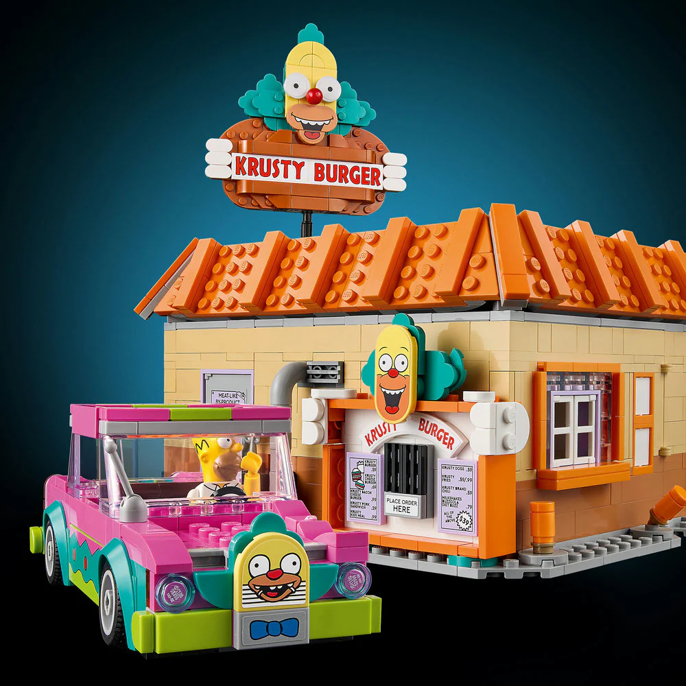 - Contenido de la caja: El restaurante Krusty Burger, el poste anunciador y el coche de payaso de Homer, además de minifiguras de Homer, Bart y Lisa Simpson, Farmer Krusty, Sideshow Bob, Squeaky Voiced Teen y Officer Lou